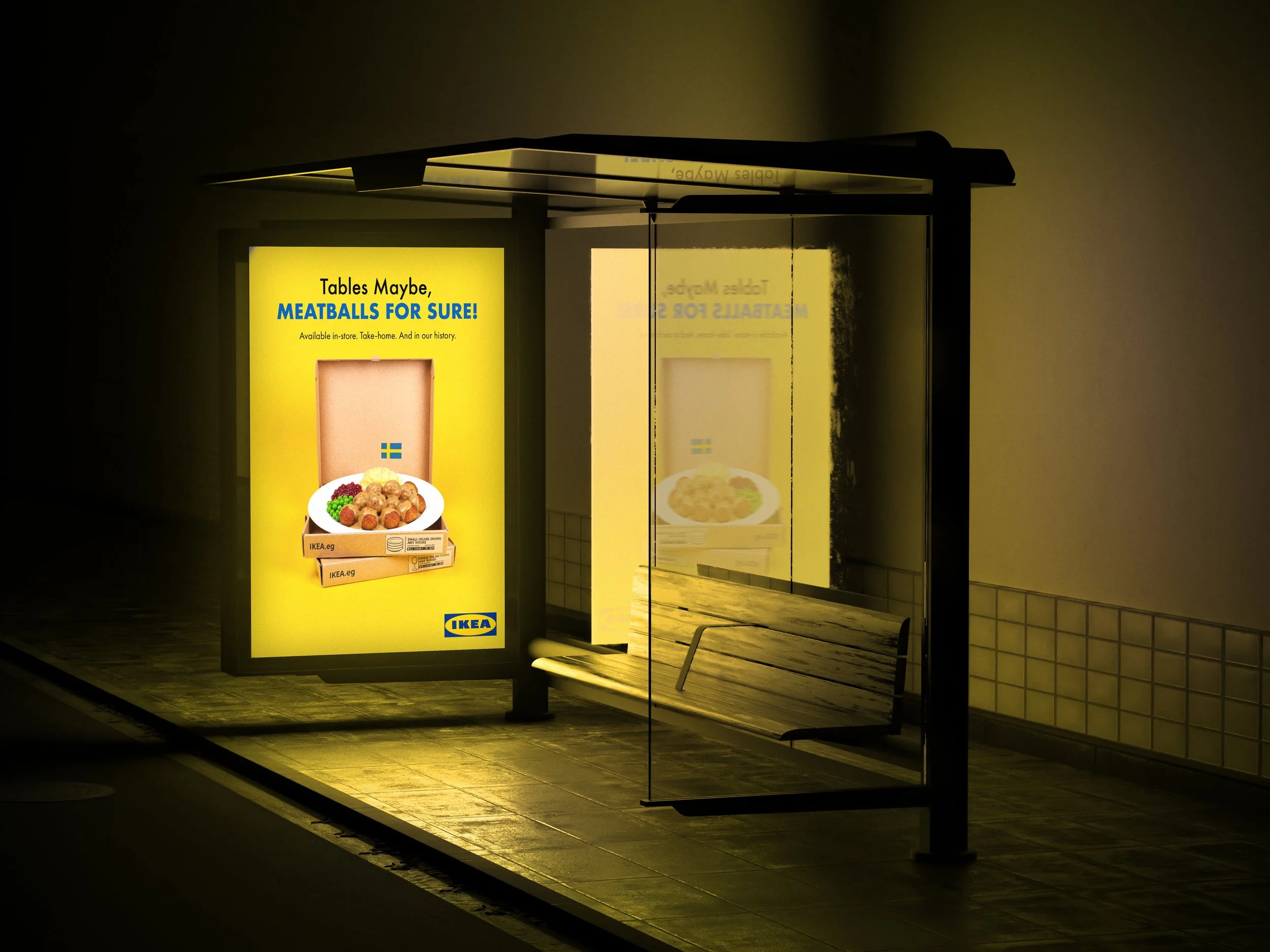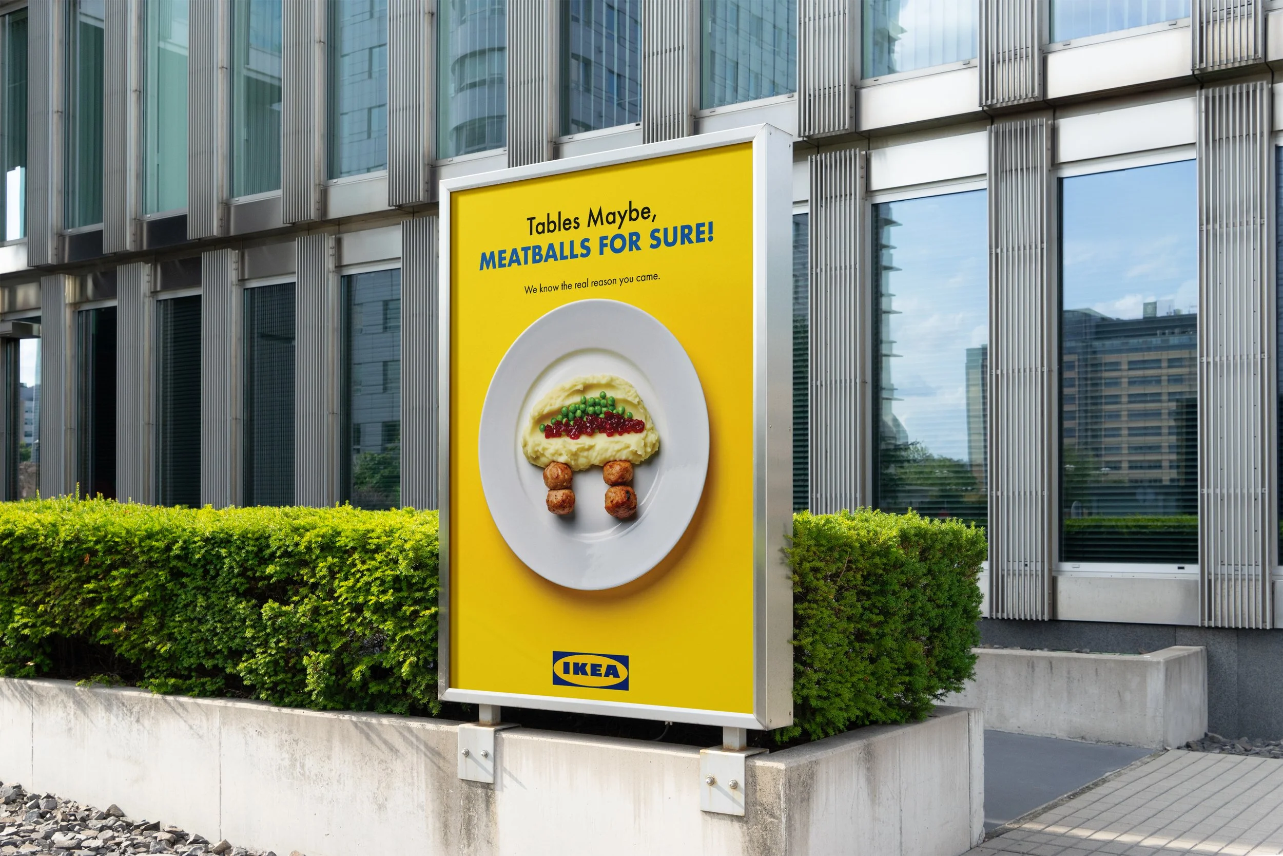The visuals were kept simple and playful to stay close to IKEA’s style. To extend the idea, I created an ambient subway ad where the transit map is built using food elements. Mashed potatoes represent the yellow line and peas represent the green line. The line “Take a seat maybe, take a meatball for sure” connects IKEA’s furniture with its famous food and relates to commuters who see the ad while standing on the subway.